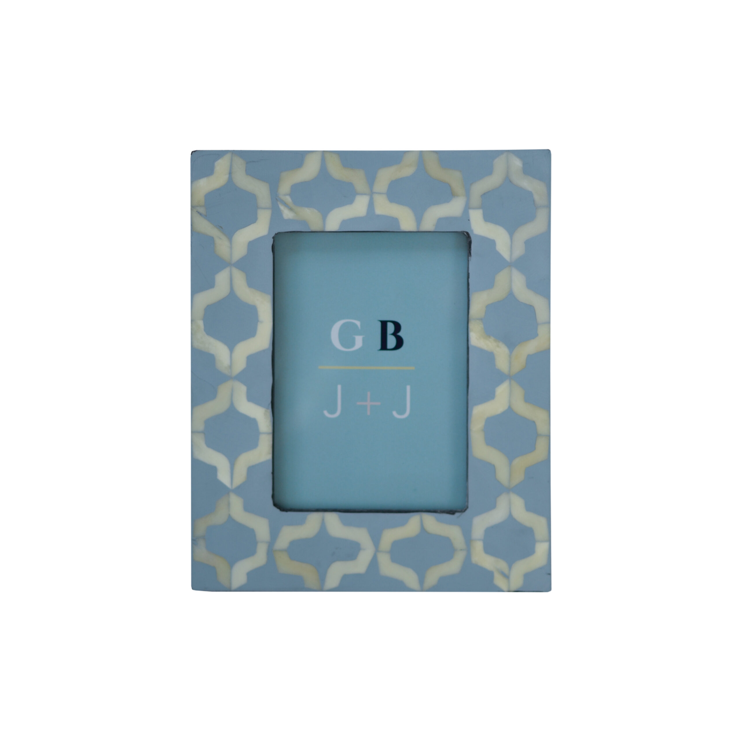Designed in collaboration with Joshua and Jane, this frame will show off your photos in style, bringing colour and texture to any table or shelf. This piece was handcrafted by highly skilled artisans carrying out a time-honoured method, passed down through generations in Rajasthan, India. Intricate pieces of buffalo bone are hand-carved and laid onto the surface. The spaces are then hand-filled with resin and polished. Please note that as these items are handmade, each piece is unique and may feature slight variations. Dimensions: 19cm W x 24cm H