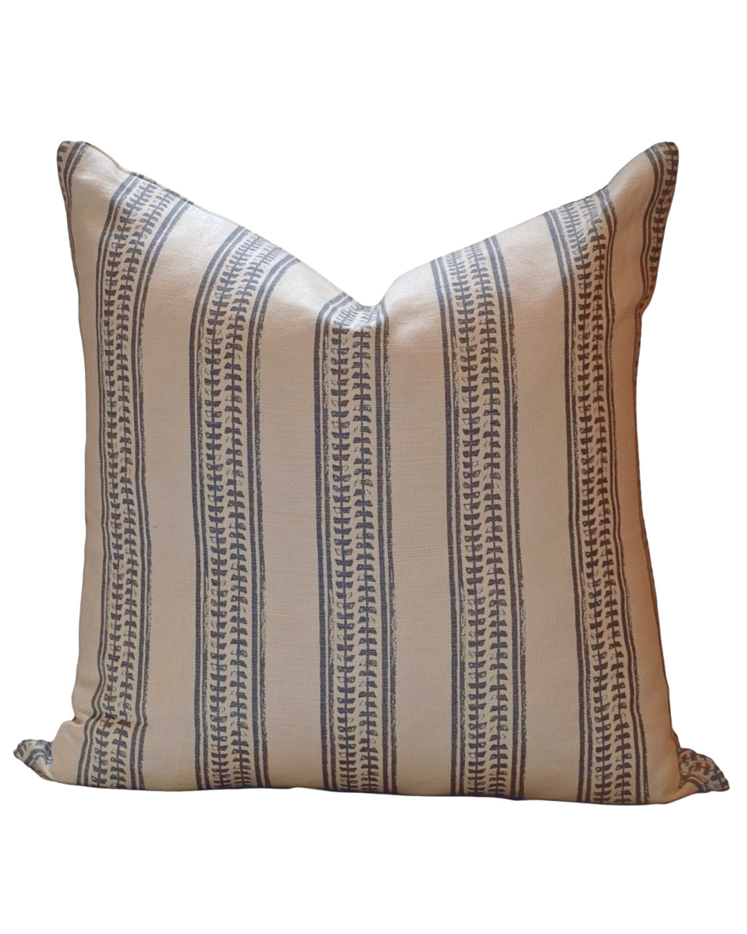 This classic pattern features a petite leaf motif between a stripe pattern. Watercolour techniques allow for a soft, mottled look, ideal for a decorative addition to a classic interior. Pairs perfectly with our Blue Botanical Leaf cushion.