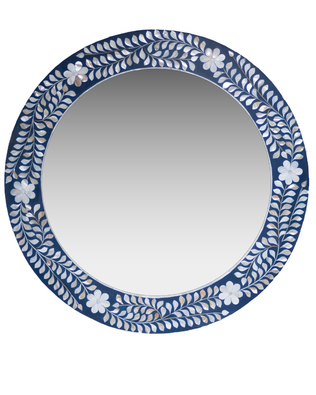 Classic floral pattern will add pattern and colour to your walls. Bevelled edge detail to glass. Pearl inlay and resin frame on a wooden backing. Ethically sourced.